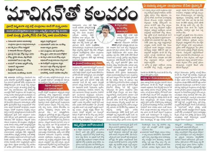 గుదిబండగా మారిన అమరావతిపై చంద్రబాబు ప్రజలను మభ్య పెడుతున్నాడు. తన స్కాముల కోసం రాష్ట్రానికి ఏ రాజధాని లేకుండా చేస్తున్నాడు. ప్రజలపై రూ.లక్షల కోట్ల అప్పుల భారం రోడ్లు, డ్రైనేజీ, కరెంటు, నీళ్ల కోసమే అమరావతిలో రూ.2 లక్షల కోట్లు.ఈ రెండేళ్లలో చంద్రబాబు తెచ్చిన రూ.3.57 లక్షల కోట్ల అప్పు ఏమైంది? మా పథకాలన్నీ రద్దు.. మీరు చెప్పిన సూపర్సెక్స్, సూపర్ సెవెన్ కూ దిక్కులేదు-పేర్ని నాని