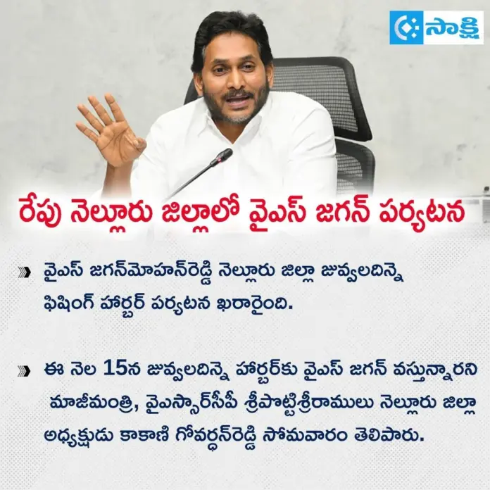 రేపు నెల్లూరు జిల్లాలో వైఎస్ జగన్ పర్యటన..